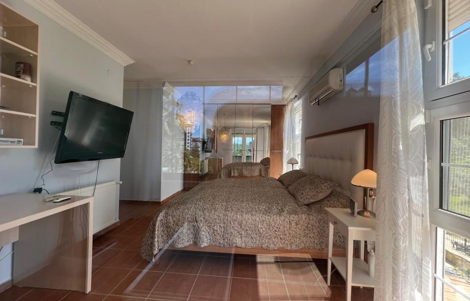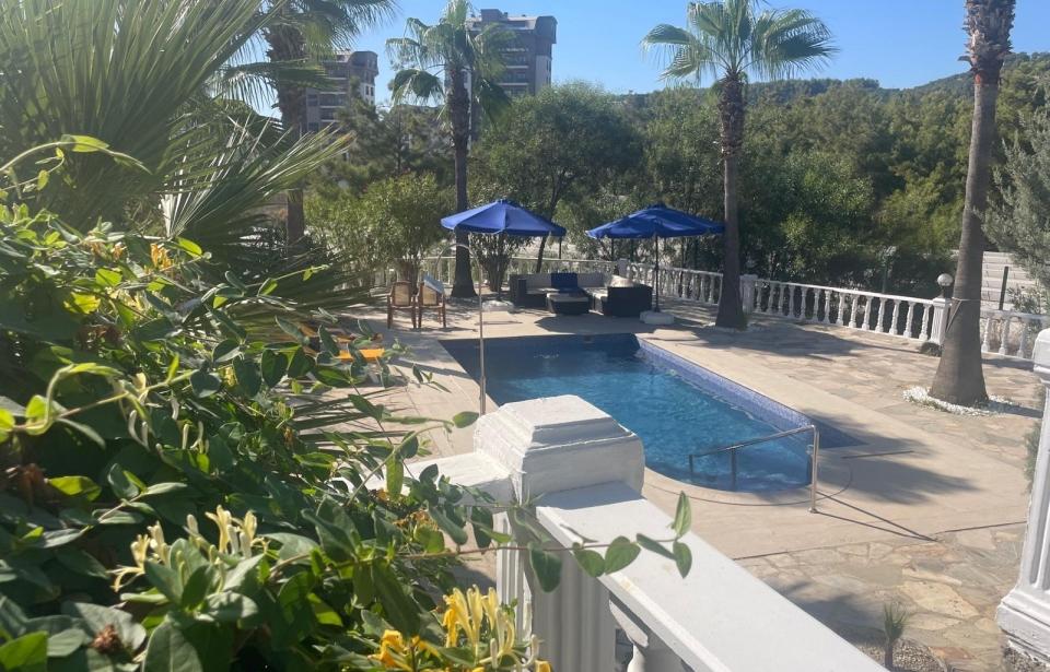 Geniş bahçe neredeyse küçük bir özel park gibi hissettiriyor – palmiye ağaçları, olgun ağaçlar ve rahatlamak için bolca alan.